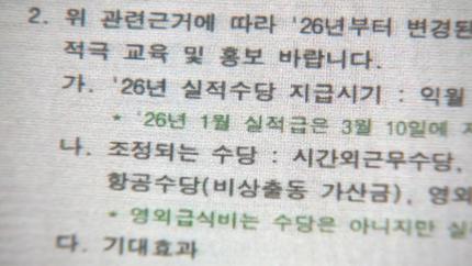 그러면서 이번 결정이 이뤄진 건 근무시간과 임무 횟수 등 증빙 자료 확인 문제로 지급이 지연되거나 금액이 잘못 나가는 사례를 방지하는 차원이라며, 기본 급여와 수당 지급일 맞춤으로써 보수 내용을 명확하게 인지하도록 하는 측면도 있다고 덧붙였습니다.