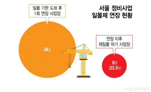 일몰 기한 도래로 연장 혜택을 받은 서울시 정비사업장 가운데 약 24%는 연장 이후에도 몇년 간 사업이 지연되며 다시 일몰 위기에 놓인 것으로 나타났다. 일몰제가 사업 속도와 정상화로 이어지지 않으면서 일몰제의 실효성에 의문이 제기된다.