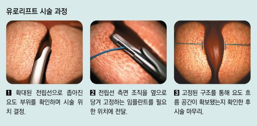 유로리프트는 전립선비대증으로 좁아진 요도 공간을 전립선 측엽을 고정해 확보하는 비절개 방식 치료로 조직을 절제하지 않고 시술한다. |