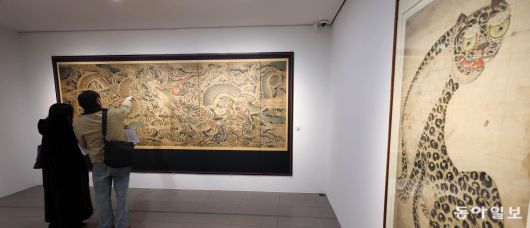 ‘호피도’와 ‘까치호랑이’ 등 조선 왕실과 백성의 미학을 한자리에서 살펴볼 수 있는 기획전이 14일 서울 종로구 갤러리현대에서 개막했다. 과거 신분에 따라 달리 향유되면서도 서로 영향을 주고받았던 전통 회화가 오늘날엔 어떻게 변주되고 있는지까지 폭넓게 짚었다. 세계적으로 주목받는 K컬처의 뿌리와 오늘날 영근 열매를 한자리에서 둘러볼 수 있는 전시다.