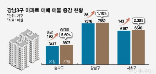 강남3구 아파트 매매 매물 증감 현황/그래픽=임종철 |