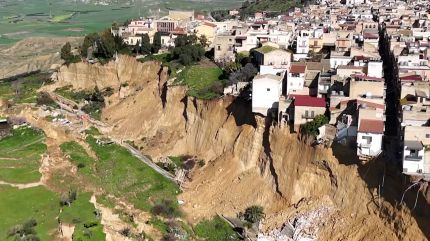 이탈리아 시칠리아 섬의 한 마을에 산사태로 길이 4km에 이르는 거대한 절벽이 생겨났습니다.