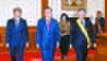 문재인 대통령이 7일 오전 청와대에서 퇴임한 이진성 전 헌법재판소장(오른쪽)과 헌법재판관들에게 훈장을 수여한 뒤 환담장으로 향하고 있다. 문 대통령은 이날 이 전 소장에게는 무궁화장을, 김이수·김창종·안창호·강일원 전 헌법재판관에게는 청조근정훈장을 각각 수여했다. 왼쪽은 유남석 현 헌법재판소장. [청와대사진기자단] |