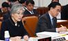 강경화 외교부 장관(왼쪽)과 조명균 통일부 장관이 8일 국회에서 열린 외교통일위원회 전체회의에 참석해 질의에 답변하고 있다. 허정호 선임기자 |