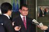 △고노 다로 일본 외무상이 10월 31일 한국 대법원이 신일철주금에 대해 강제 징용 피해자에 대한 손배배상을 지급하라고 판결한 것을 놓고 기자들의 질문에 답하고 있다. [사진=AFP제공] |