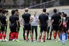 파울루 벤투 축구대표팀 감독이 지난 14일 호주 브리즈번 페리 공원 구장에서 열린 훈련 도중 선수들에게 지시를 내리고 있다. 제공 | 대한축구협회 |