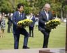 16일 스캇 모리슨 호주 총리와 호주 다윈지역의 전몰자위령비를 찾아 헌화하는 아베 신조 일본 총리(왼쪽). [AP=연합뉴스] |