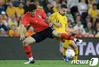 축구대표팀 김민재(왼쪽)가 17일 호주 브리즈번의 선코프 스타디움에서 열린 호주와의 평가전에서 상대와 공 경합을 펼치고 있다. © AFP=News1 |