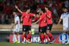 축구대표팀 공격수 남태희가 20일 호주 브리즈번에서 열린 우즈벡과 평가전에서 전반 9분 선제골을 터뜨린 뒤 동료들과 기뻐하고 있다. 제공 | 대한축구협회 |