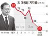 문재인 대통령의 국정운영에 대한 지지율이 최근 가파른 하락세를 보이며 50% 초반대로 추락했다. 3년차를 앞둔 역대 정권의 지지율과 단순 비교하면 호들갑을 떨 정도는 아닐 수 있다. 허니문 기간이 끝나가는, 정권 출범 이후 1년 6개월이 지난 시점까지 50% 지지율을 유지하기란 쉽지 않은 측면이 있다. 실제 한국갤럽의 분기별 집계로 보면 지금 지지율은 이명박ㆍ박근혜 정부 출범 당시의 지지율에 맞먹는 수치다.