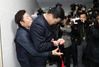 장경호 전국금융산업노동조합 우리카드 지부장(왼쪽)이 26일 오전 국회 의원회관에서 열린 카드수수료 개편방안 당정협의 회의장에 진입을 시도, 국회 관계자에게 저지당하고 있다.(사진 = 연합뉴스) |