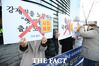 [더팩트ㅣ임세준 기자] 일본정부 망언 규탄 기자회견이 26일 오전 서울 종로구 주한 일본대사관 앞에서 열리고 있다.