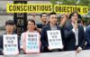 지난 6월 서울 종로구 재동 헌법재판소 앞에서 국제앰네스티 한국지부, 군인권센터 등 시민단체 회원들이 양심적 병역 거부자들의 대체 복무제 마련을 촉구하고 있다. /뉴시스 |