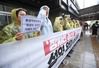 5일 오전 서울 중구 코리아나 호텔 앞에서 열린 '장자연리스트' 진상규명 수사 촉구 기자회견에서 시민단체 회원들이 구호를 외치고 있다. 사진/연합뉴스 |