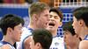 삼성화재 박철우가 2세트 블로킹으로 한국전력 공격을 차단한 뒤 환호합니다.