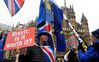 영국 런던의 국회의사당 앞에서 10일(현지시간) ‘브렉시트:과연 가치가 있나’라는 피켓을 든 한 남성이 브렉시트(영국의 유럽연합 탈퇴, Brexit) 반대 시위를 벌이는 뒤로 브렉시트에 찬성하는 시위대가 ‘탈퇴는 결별을 뜻한다’는 피켓을 들고 서 있다. 테리사 메이 영국 총리는 이날 “북아일랜드와 아일랜드 간 국경 문제로 부결될 우려가 있다”며 11일로 예정됐던 하원의 브렉시트 표결 연기를 발표했다. /런던=로이터연합뉴스