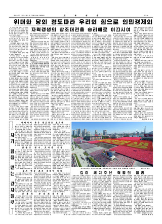 노동당 중앙위 기관지인 <노동신문>은 최근 보름 사이 ‘자력갱생’을 호소하는 글을 세차례나 2면 머리로 다뤘다. 12일치엔 “자력갱생, 간고분투”라는 제목의 ‘정론’(중요 논설)을, 4일치엔 김 위원장의 지도로 올해 이룩한 경제부문 성과를 ‘자력갱생’이란 열쇠말로 ‘총화’한 “자력갱생의 창조대전을 승리에로 이끄시여”를, 11월30일치엔 “자력갱생의 위대한 동력으로 혁명의 전진을 가속화하자”는 논설을 실었다.