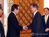 문 대통령, 후쿠시로 한일의원연맹 회장과 악수 |
