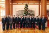 문재인 대통령이 14일 오전 청와대에서 한일의원연맹 합동총회를 위해 방한한 누카가 후쿠시로 일한의원연맹 회장 등 대표단과 접견을 마친 뒤 크리스마스트리 앞에서 기념촬영을 하고 있다. 청와대사진기자단 |