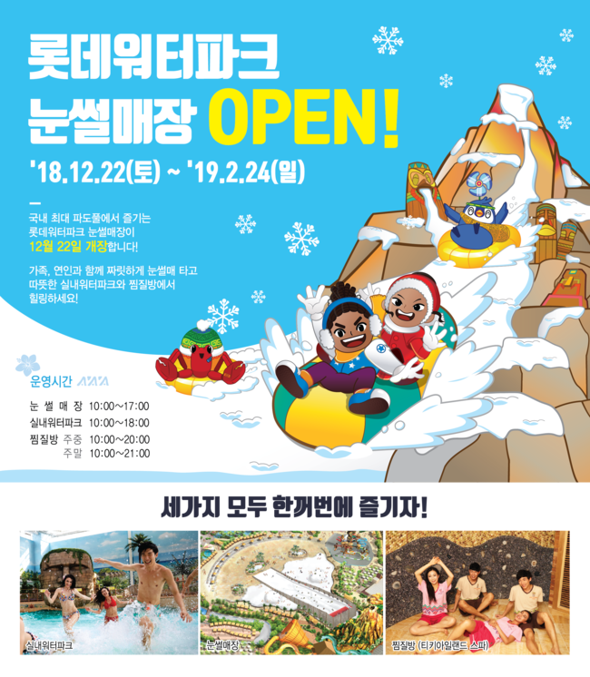 롯데워터파크가 왜 특별할까. 바로 이번에 개장하는 눈썰매뿐만 아니라 워터파크, 사우나, 찜질방 등 다양한 즐거움을 모두 누릴 수 있기 때문이다.