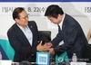 인사하는 홍영표 원내대표와 홍종학 장관 |