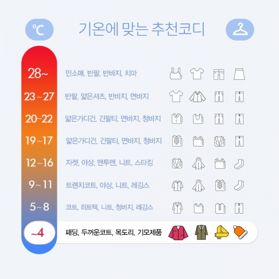 날씨에 맞는 추천 코디는 롱패딩. 그룹 레드벨벳의 예리는 넉넉한 사이즈의 보랏빛 패딩으로 화사하게 멋을 냈다. 그룹 뉴이스트W 백호는 체크무늬 셔츠에 검은색 롱패딩을 걸쳐 훈훈한 겨울 패션을 선보였다.