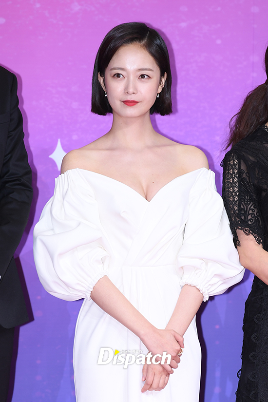 전소민은 어깨를 드러낸 화이트 롱 드레스로 순백의 자태를 뽐냈다.
