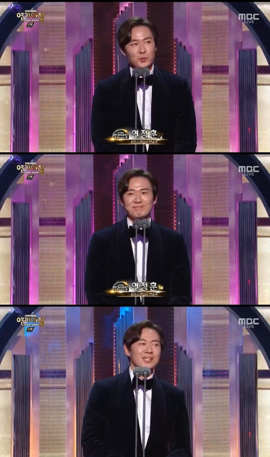 지난 30일 연정훈은 '2018 MBC 연기대상'에서 '내 사랑 치유기'로 연속극 부문 최우수연기상을 수상했다.