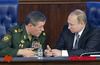 【모스크바=AP/뉴시스】러시아 푸틴 대통령이 2015년 12월 전군 최고 지휘관 회의에서 당시 합참의장 발레리 게라시모프 장군과 이야기를 나누고 있다. 2015. 12. 11. |