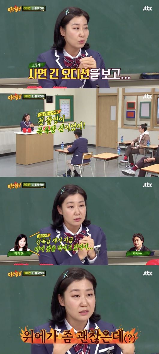 라미란은 "첫 촬영이 목욕탕 신이었다. 박찬욱 감독님이 장면에 대해 설명하던 중 하체 노출이 있다고 하더라"며 "그래서 내가 '아이 젖을 먹이고 있어서 위가 좀 더 괜찮은데'라고 했다"고 말해 모두를 놀라게 했다. 무방비한 상태에서 터져나오느 라미란의 19금 토크에 오히려 형님들이 깜짝 놀란 것.
