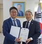 지난 3일 주 과테말라 대한민국 대사관에서 진행된 표창장 수여식에서 안태영 한세실업 과테말라 법인장(왼쪽)이 홍석화 주 과테말라 대사와 기념 촬영을 하고 있다. 한세실업 제공 |