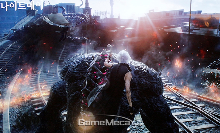 ▲ '데빌 메이 크라이 5'에서 '네로'는 의수 '데빌 브레이커'를 장착하고 싸운다 (사진제공: 게임피아)