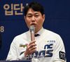 NC 양의지가 8일 창원 사보이호텔에서 열린 입단식에서 기자의 질문에 답하고 있다. 양의지는 지난 달 NC와 계약기간 4년, 총액 125억원에 계약했다. 2019~2022년 계약금 60억원, 연봉 65억원의 조건이다.2019. 1. 8.창원 | 최승섭기자 thunder@sportsseoul.com |