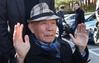 강제징용 피해자 이춘식 씨가 지난해 10월 서울 서초동 대법원에서 선고 직후 취재진을 향해 두 손을 들어 고맙다고 말하고 있다.[사진=연합뉴스] |