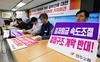 양대노총을 비롯한 최저임금위원회 노동자위원들이 9일 오전 서울 여의도 한국노총 대회의실에서 최저임금 결정체계 개편 정부안에 대한 기자회견을 갖고 피켓을 들어보이고 있다.