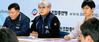 이성경 한국노총 사무총장(맨 왼쪽)과 백석근 민주노총 사무총장(왼쪽 둘째)이 9일 서울 여의도 한국노총 대회의실에서 정부가 내놓은 최저임금 개편안에 대해 반대 의견을 밝히고 있다. 양대 노총은 자신들 주장이 받아들여지지 않으면 총파업까지 단행한다는 방침이다. [김호영 기자] |