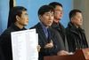 13일 오후 서울 여의도 국회 본청 정론관에서 바른미래당 하태경(왼쪽에서 둘째) 최고위원과 5·18 북한특수부대 개입 주장과 관련한 피해 탈북자들이 80년 5월 광주에 간첩으로 잠입했다는 허위 사실을 유포한 혐의로 지만원씨 고소 기자회견을 하고 있다. /뉴시스 |