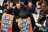 더불어민주당 이해찬 대표가 14일 오전 국회 정문에서 5.18진상규명 및 책임자 처벌을 요구하며 농성중인 오월 어머니회 등 피해자 가족들을 만나고 있다.