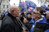 영국 하원은 15일(현지시간) 열린 승인투표(meaningful vote)에서 브렉시트(Brexit) 합의안을 부결시켰다. 합의안이 부결됨에 따라 테리사 메이 총리 정부는 큰 타격을 받게 됐다. 메이 정부는 3 개회일(sitting days) 이내에 ‘플랜 B’를 제시해야 한다. ‘플랜 B’는 영국 정부가 브렉시트를 연기하거나 제2 국민투표를 실시하는 방안, 제1야당인 노동당의 조기총선 추진, 영국이 EU와 아무런 협정을 맺지 못하고 탈퇴하는 ‘노 딜’ 브렉시트까지 다양한 시나리오가 거론된다. 사진은 이날 영국 런던 의사당 바깥에서 브렉시트 찬반론자들이 격론을 벌이고 있는 모습./사진=런던 AP=연합뉴스 |