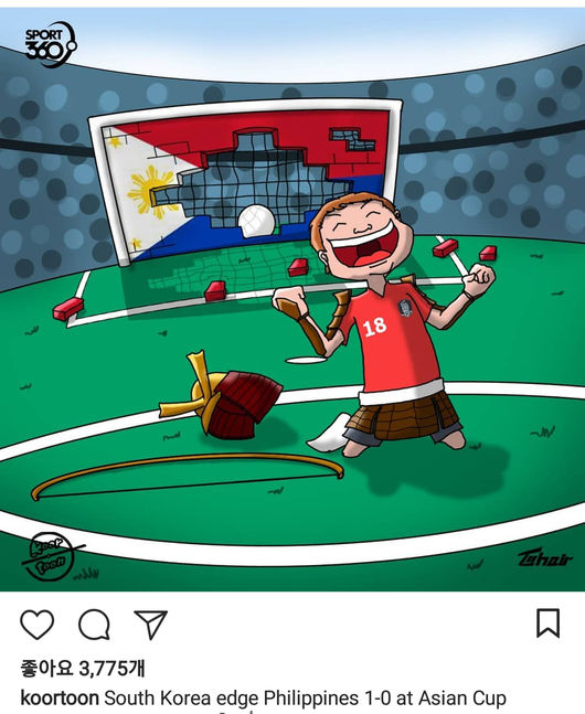 [OSEN=이균재 기자] 전 세계 축구에 관련한 만화를 그려 SNS 상에서 화제가 되고 있는 한 계정에 이번 아시안컵 예선전에 관한 소개 만화에서 욱일기(전범기)가 등장해 또 논란이 되고 있다.