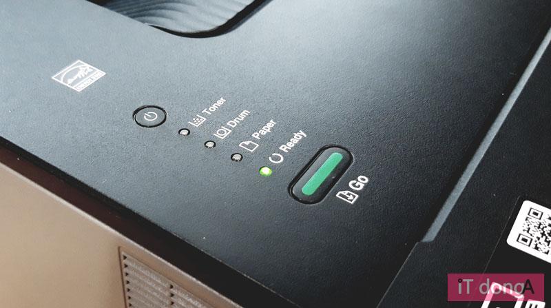 각종 사용자 인터페이스는 상단 좌측에 모여 있으며 구성이 간결하다. 토너 교체, 드럼 교체, 용지 공급 오류, 대기 상태(Ready)를 각각 알리는 4개의 버튼이 달렸으며, 전원 버튼 및 GO(실행) 버튼도 갖췄다. GO 버튼은 오류 표시 지우기, 중단된 인쇄 명령 재실행, 2초 이상 눌러 인쇄 취소 등의 여러 기능을 수행하는데, 이용 방법이 제품에 직접 적혀 있었다면 더 좋았을 듯 하다. 특히 인쇄 취소 기능은 별도의 버튼으로 마련했다면 한층 더 쓰기 편했을 것 같다.