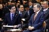 문재인 대통령이 13일 오전 경남 창원시 경남도청에서 열린 중소기업 스마트 제조혁신 전략 보고회에서 김경수 경남도지사와 얘기를 나누고 있다. 문재인 대통령은 이날 경남도가 추진하고 있는 남부내륙철도를 예타 면제로 추진하겠다고 밝힌 바 있다. /연합뉴스. |
