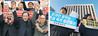 29일 오후 경기도 포천시청에서 박윤국(왼쪽 사진의 앞줄 가운데) 포천시장과 시민들이 지하철 7호선을 포천까지 연장하는 사업이 정부의 예비 타당성 조사 면제 대상에 포함된 것을 반기며 만세를 부르고 있다. 반면 이날 오전 환경 단체인 한국환경회의 관계자들은 서울 종로구 정부 서울청사 앞에서 정부의 예비 타당성 조사 면제 발표에 반대하는 기자회견을 열었다(오른쪽 사진). /연합뉴스 |