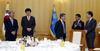이제민 국민경제자문회의 신임 부의장(왼쪽 두 번째)와 이정동 경제과학특별보좌관(오른쪽 두 번째)이 30일 오후 청와대에서 문재인 대통령과 오찬 간담회를 하기에 앞서 각각 김수현 정책실장(왼쪽), 윤종원 경제수석(오른쪽 세 번째), 정태호 일자리수석과 얘기를 나누고 있다. /연합뉴스 |
