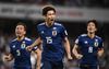 오사코 유야(가운데·베르더 브레멘)와 하라구치 겐키(오른쪽·하노버), 나가토모 유토(갈라타사라이) 등 일본 대표팀 선수들이 지난 28일 이란전에서 골 세리머니를 함께 하고 있다. 출처 | 아시안컵 트위터 |