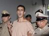 태국형사법원에 출석하면서 지지자들을 향해 외치고 있는 알아라이비 |