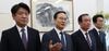 바른미래당 유의동 원내수석부대표(왼쪽부터), 더불어민주당 홍영표 원내대표, 민주평화당 장병완 원내대표, 정의당 윤소하 원내대표가 11일 국회 운영위원장실에서 자유한국당 일부 의원들의 ‘5·18 망언’ 관련 공동대응 방침 발표하고 있다./연합 |