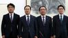 바른미래당 유의동 원내수석부대표(왼쪽부터), 더불어민주당 홍영표 원내대표, 민주평화당 장병완 원내대표, 정의당 윤소하 원내대표가 11일 국회 운영위원장실에서 자유한국당 일부 의원들의 ``5·18 망언`` 관련 공동대응 방침 발표하고 있다. 연합뉴스 |