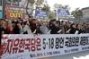 지난 11일 서울 국회 정문 앞에서 5·18 관련 단체 회원들이 폄훼 논란을 일으킨 자유한국당 의원들의 제명을 촉구하고 있다. 연합뉴스 |