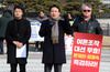 자유한국당 당권 주자인 김진태 의원이 13일 오전 서울 종로구 청와대 앞 분수대에서 대선의 부당함과 문재인 대통령에 대한 특검 실시를 주장하고 있다. |